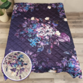 Stijlvolle katoensatijnen bedsprei én Easy Dekbed met bloemenprint in lavendel en paars – dubbelzijdig ontwerp, vulling van 150 gsm en een thread count van 200TC.